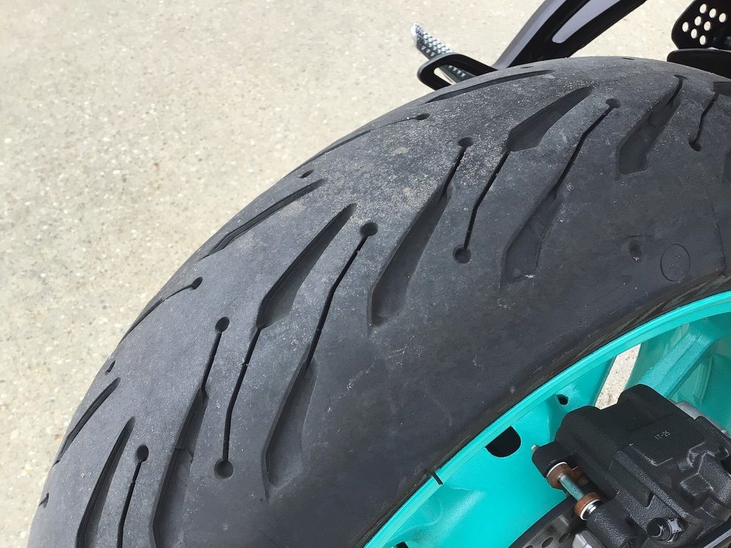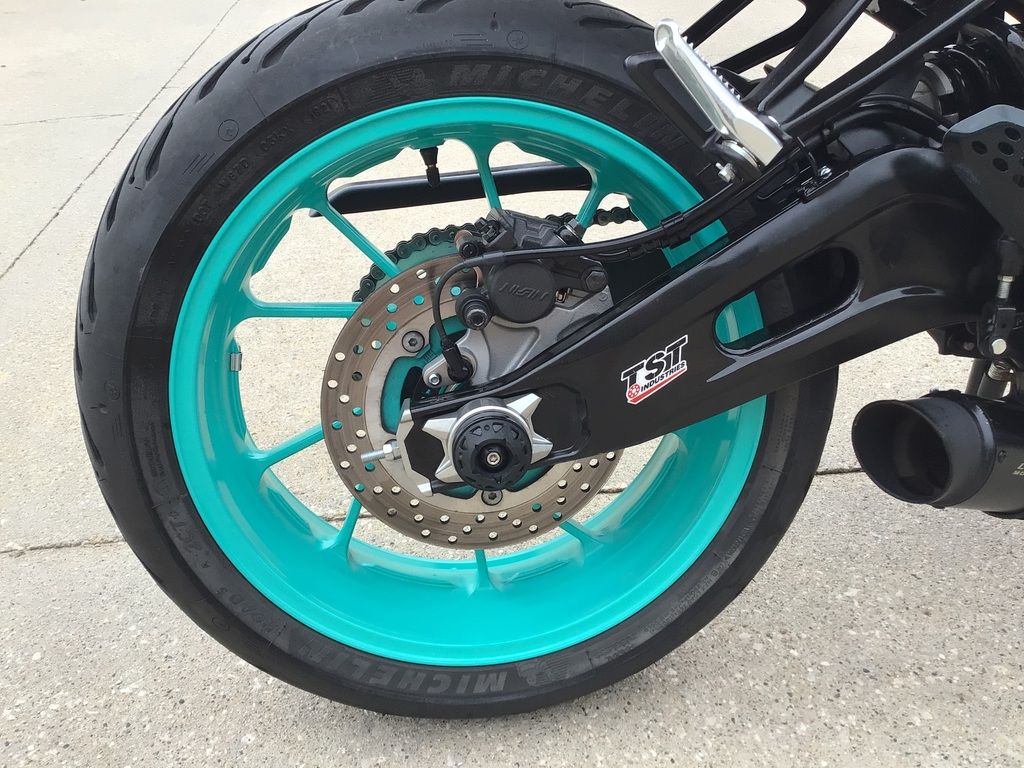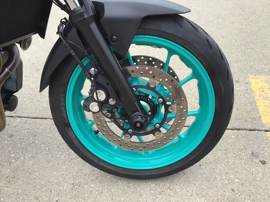 Lightweight 10-spoke cast aluminum wheels reduce unsprung weight for great handling and suspension performance. The Michelin Road 5 tires offer excellent grip and agility with 120/70ZR17 front and 180/55ZR17 rear sizes.