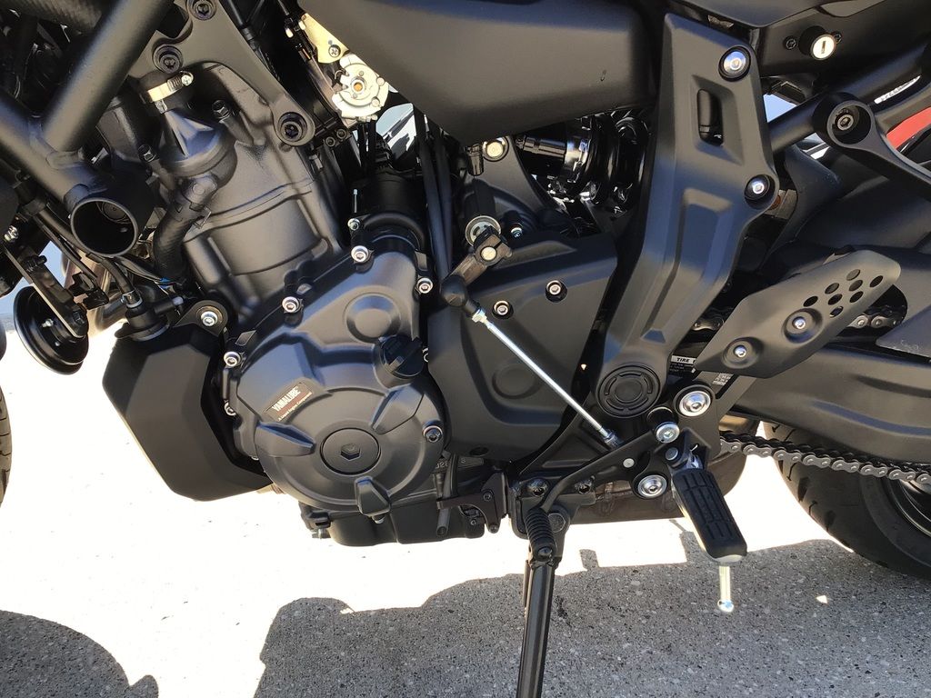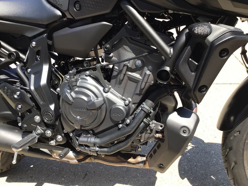 The MT-07 features the compact 689cc liquid-cooled, inline twin cylinder, DOHC CP2 engine with fuel injection. The fun and characterful CP2 engine provides both outstanding low- to mid-range torque and strong high-rpm pulling power. Fuel injection settings are optimized for seamless, linear throttle response characteristics, even when the throttle is slightly open at low rpm.